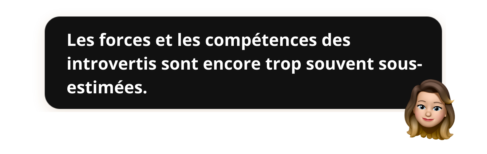 Je suis moi-même introvertie mais je n’ai compris qu’avec le recul l’impact que cela avait eu sur ma carrière. J’ai reçu de la part de certains managers des remarques qui m’ont déstabilisée : “tu es trop discrète”, “tu ne prends pas assez la parole”... j’aurais aimé avoir des clés de compréhension pour mieux assumer mon tempérament et pouvoir éclairer mes N+1, pour qu’on s’appuie encore plus sur mes forces.